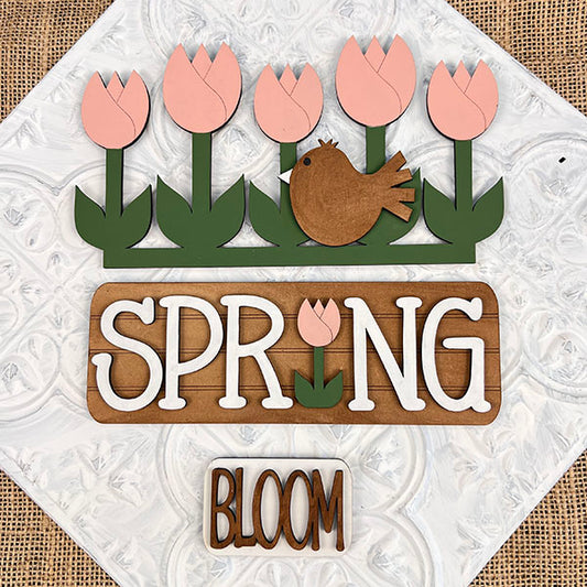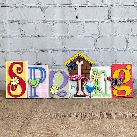Spring Word Block Shelf Sitter - DIY seasonal home decor craft kit - Set of 1