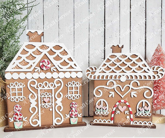 Gingerbread Houses Shelf Sitters - DIY seasonal home decor craft kit - Set of 2