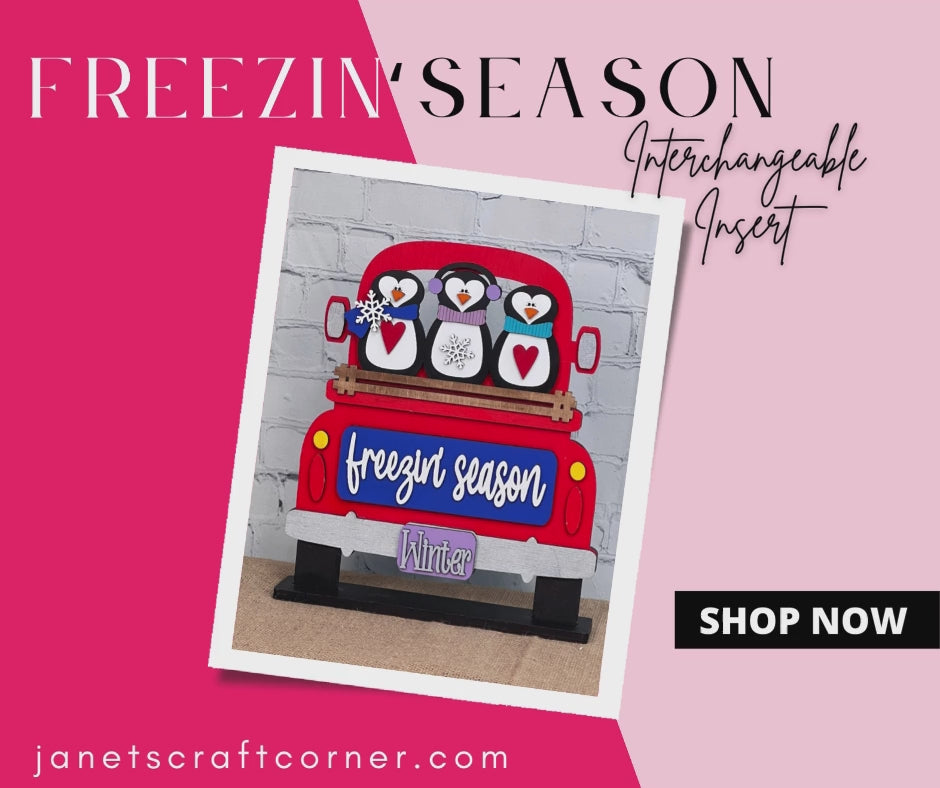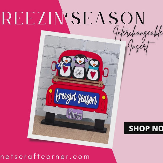 Introducing the Freezin' Season Insert, perfect for adding a touch of winter whimsy to your home! Featuring playful penguins, this product brings a fun and quirky vibe to any space. Say goodbye to boring decor and hello to some frosty friends! (Note: does not include actual penguins, sorry!)