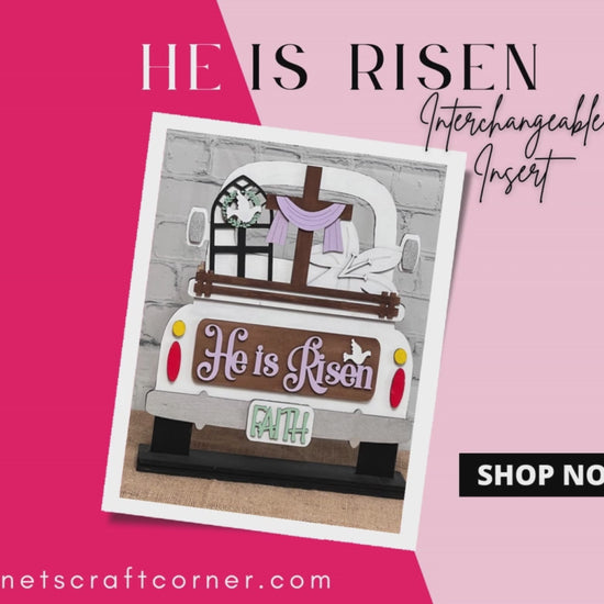 Channel your DIY spirit and celebrate the true meaning of Easter with our He is Risen Insert craft kit! Easily interchange it with our Antique Truck, Breadboard, Door Hanger, or Garden Fence bases for a unique holiday decoration. Show off your creativity and spread the Easter joy!(No quotes needed)