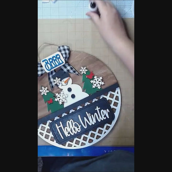 Hello Winter Interchangeable Insert - DIY seasonal home decor craft kit - 1 set of 3 pieces