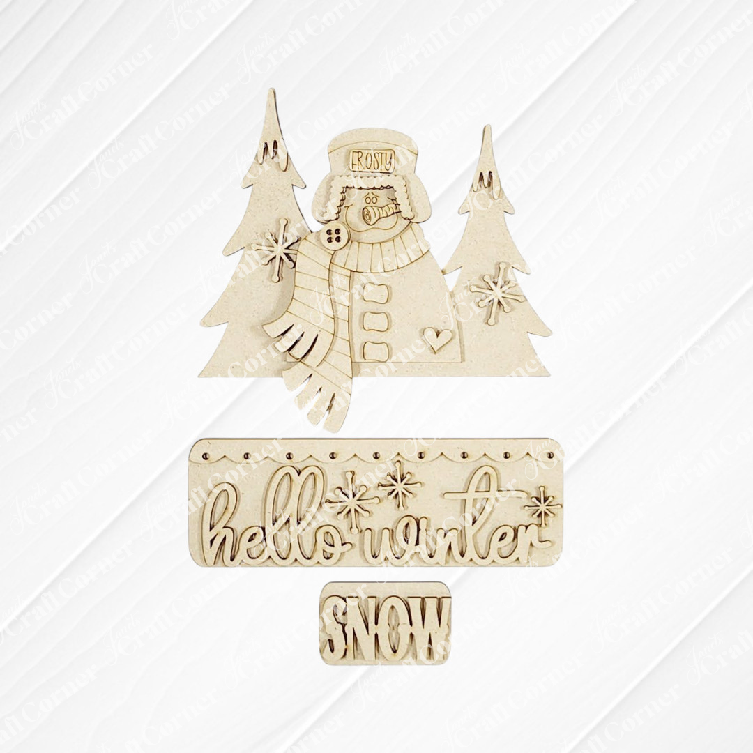 Hello Winter Snowman Interchangeable Insert - DIY seasonal home decor craft kit - 1 set of 3 pieces