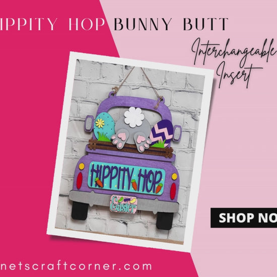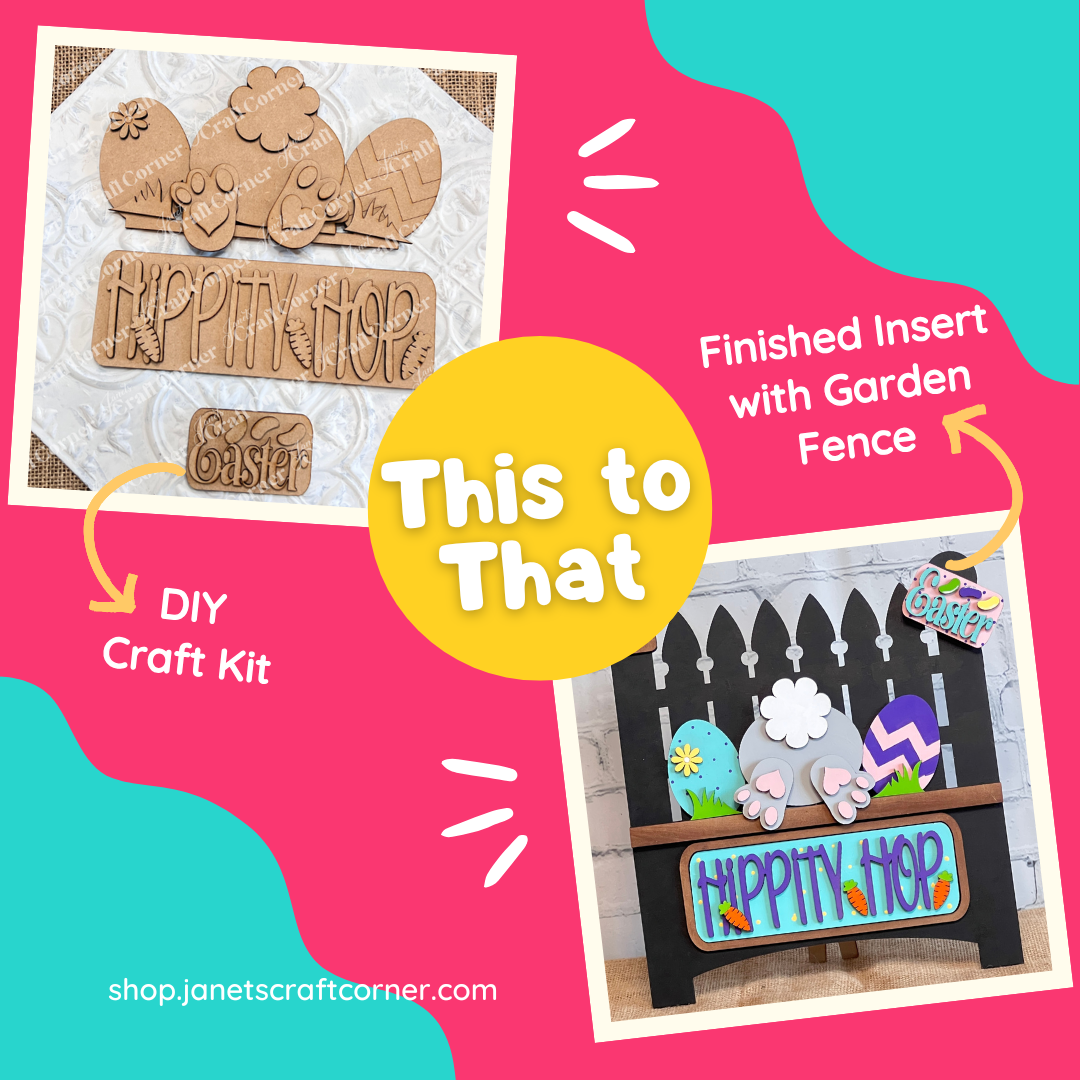Hippity Hop Bunny Butt Interchangeable Insert - DIY seasonal home decor craft kit - 1 set of 3 pieces