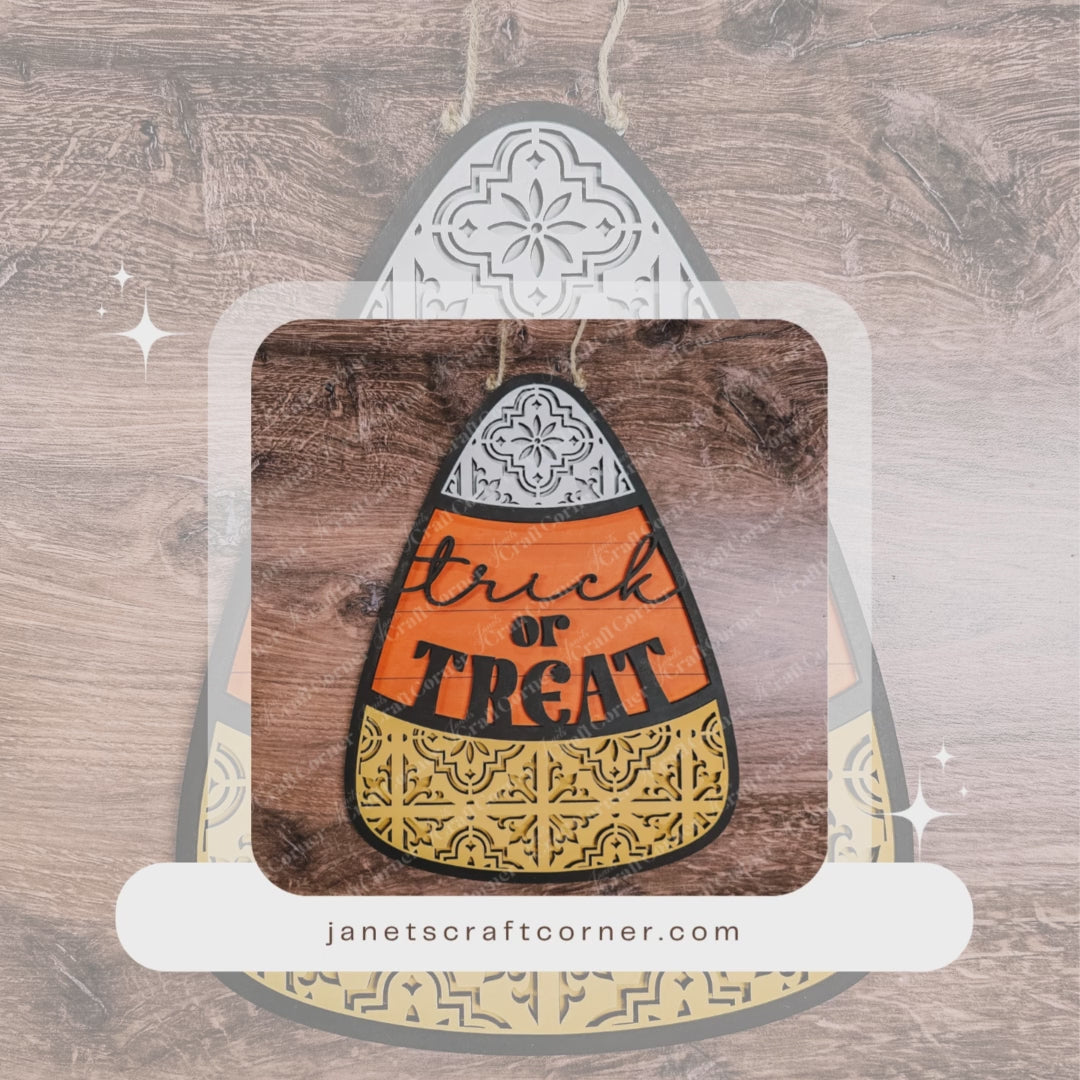 Ornate Candy Corn Door Hanger - DIY seasonal home decor craft kit - Set of 1