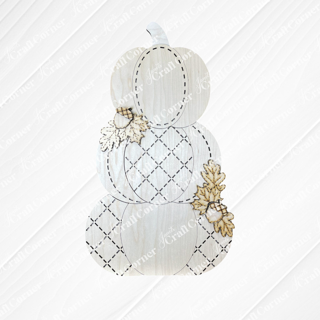 Quilted Pumpkin Stack Shelf Sitter - DIY seasonal home decor craft kit - set of 1
