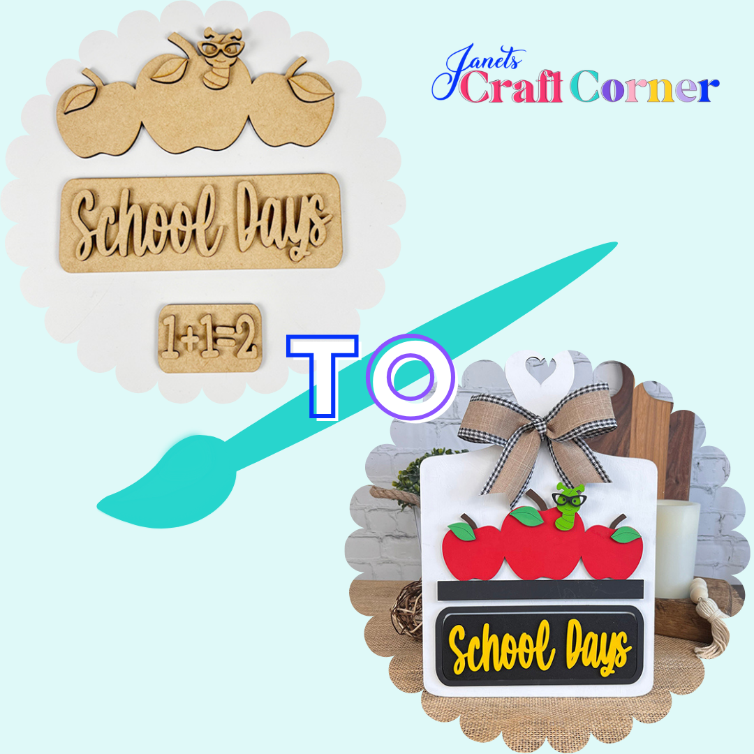School Days Interchangeable Insert - DIY seasonal home decor craft kit - 1 set of 3 pieces