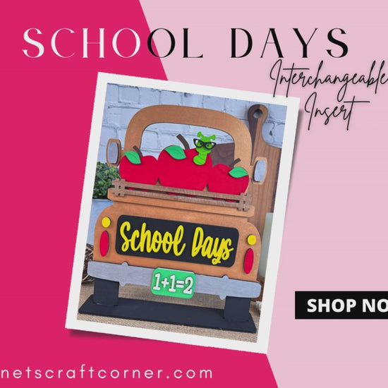 This School Days Interchangeable Insert is the perfect way to add some farmhouse decor to your life! Drive your space to the stylish side of chic with this rustic truck adorned with the phrase "School Days." Keep it casual and cute with a little extra country charm!