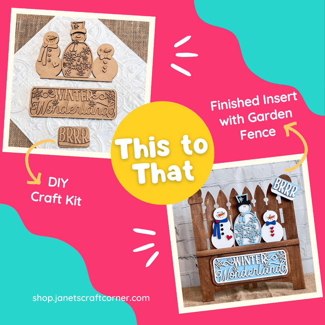 Transform your home into a Winter Wonderland with our interchangeable insert! Our DIY craft kit works with our interchangeable bases, allowing you to easily swap out designs and keep your decor fresh all season long. Create a unique and festive atmosphere without breaking the bank. (Snow way!)